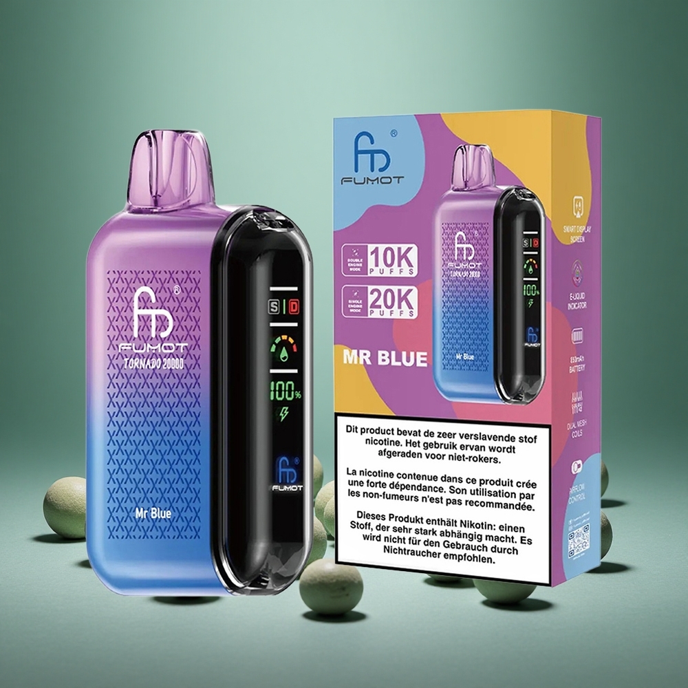 כחול Mr Blue Fumot Tornado 20000 Puffs סוללה נטענת 850mAh סליל כפול Mesh