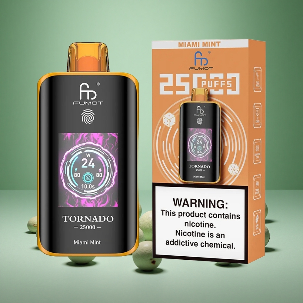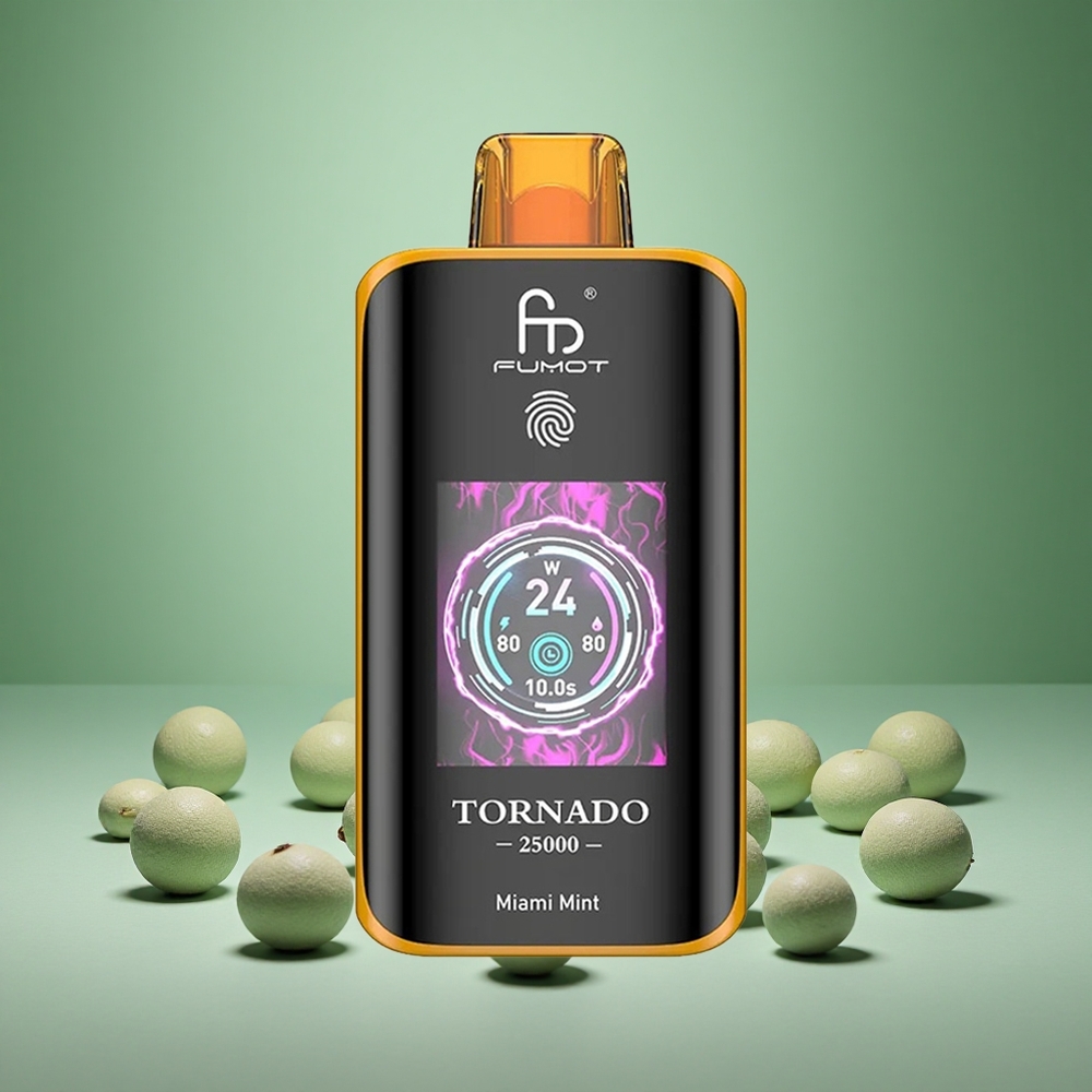 מנטה מיאמי Fumot Tornado 25000 Puffs סוללה נטענת 700mAh מסך HD
