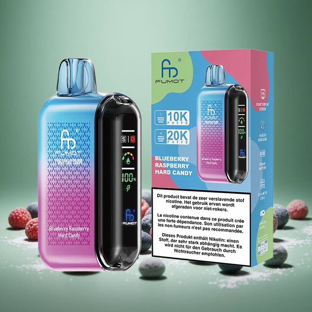 סוכריות קשיח פטל אוכמניות Fumot Tornado 20000 Puffs סוללה נטענת 850mAh
