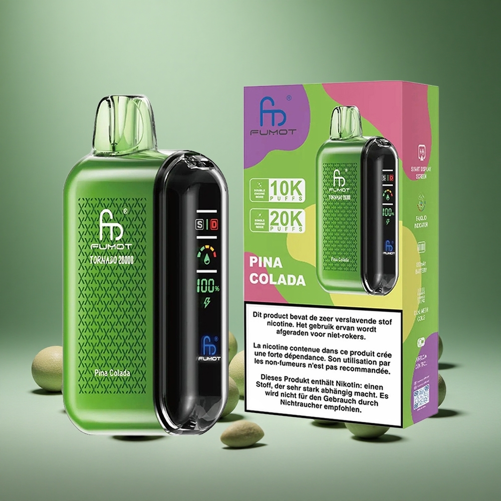 פינה קולדה Fumot Tornado 20000 Puffs סוללה נטענת 850mAh מציג חכם