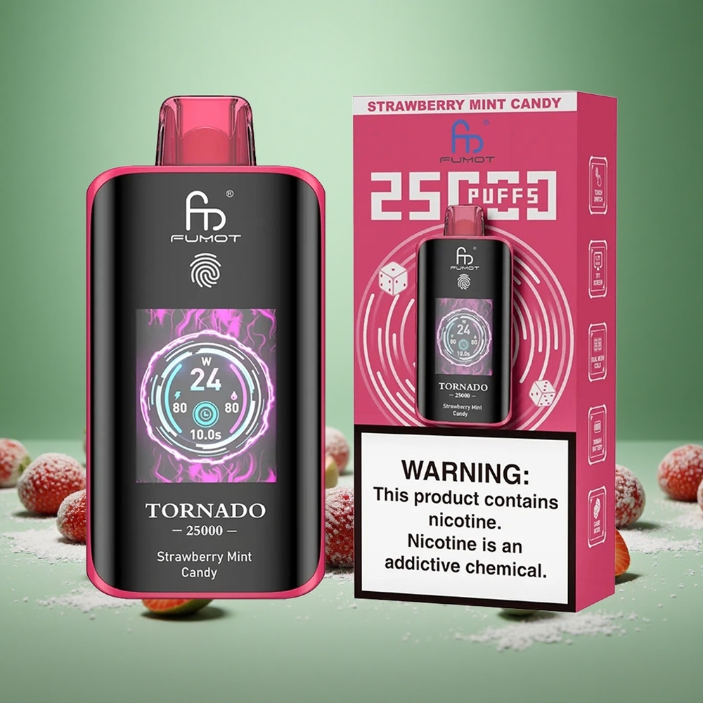 תות מנטה סוכריות Fumot Tornado 25000 Puffs מסך HD סוללה נטענת